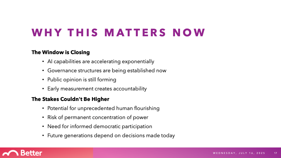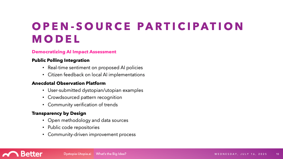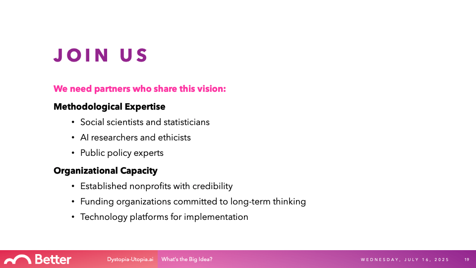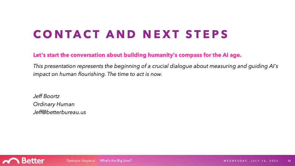 In that spirit I offer this concept deck. Please check it out, comment, challenge, and if you’re so moved, reach out to me with your interest in getting involved. I am not an AI developer, Wall Street Titan, or Government Official; I am a human being. Their voices are already in the conversation, I hope to add the rest of us.