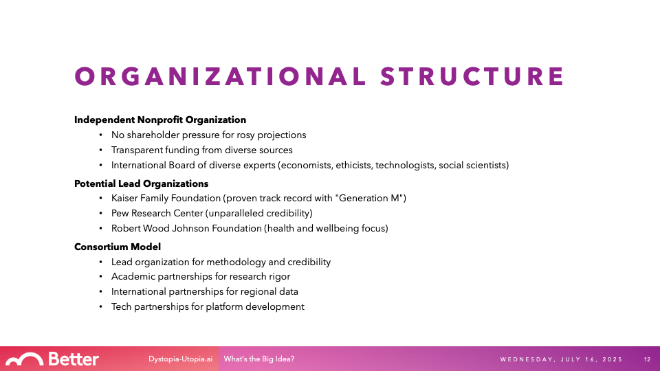 I don’t want to own this tool. I feel it should rather be owned a non-profit organization for the benefit of all humanity, supported by the masses. It should be international, not US-centric. It should give everyone a voice (as we all stakeholders of AI’s success, or failure).